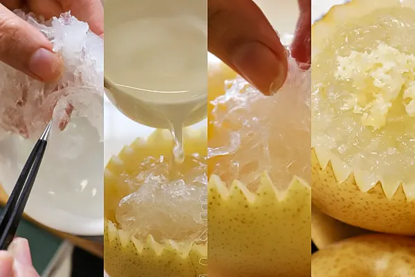 Step 8:While the bird’s nest is stewed, wash the mangoes and peaches and dice them for later use.